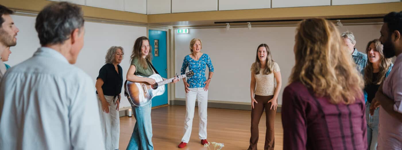 Zingen is een vorm die zich er geweldig voor leent om deze vrijheid te verkennen. Door helemaal waar te laten zijn wat we in dit moment ervaren, en daarin zingen, kunnen we een vrijheid gaan ervaren die door niemand afgepakt of beperkt kan worden. We kunnen een ruimte ontdekken waarvan we zelf denken 'ben ik dit?' Ben ik zo ruim? Zo groot, zo gevoelig, zo krachtig?